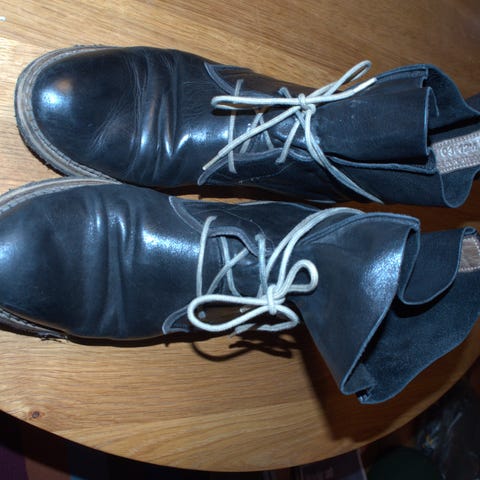 Sorte støvletter med frynser bagpå og lynlås på siden.