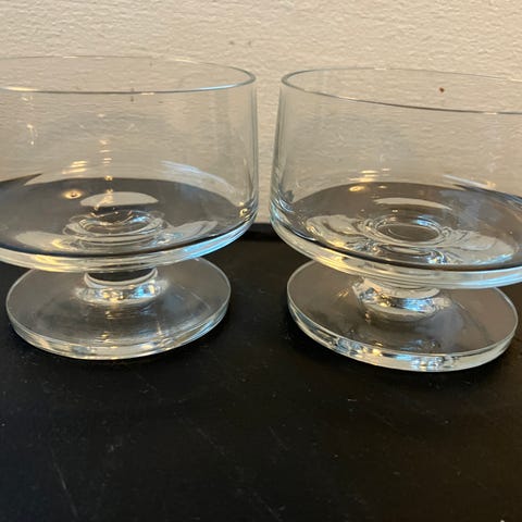 Arvet højde 8 cm og diameter 5½ cm Der er 3 intakte og 1 med et afslag på fodens kant- (følger med gratis, hvis det ønskes). Sender gerne.
