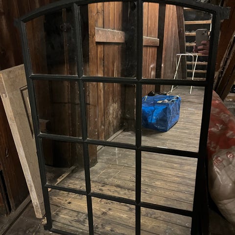 Spejl i gammel staldvindue, smedejern