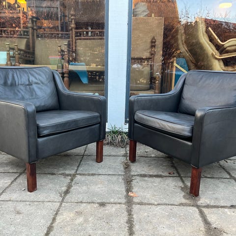 Smuk skandinavisk design lænestol i palisander og sort knapsyet læder, stolen er i flot stand!
