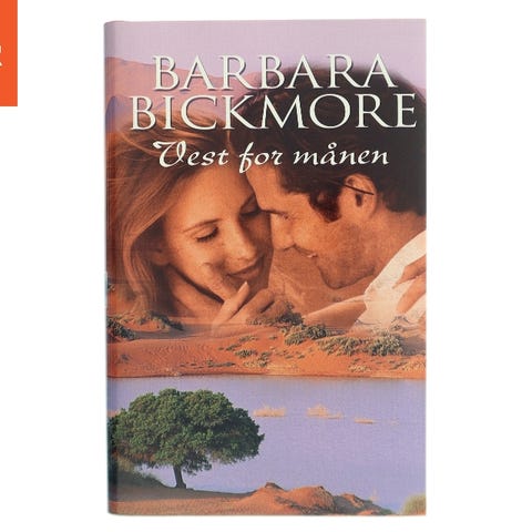 Barbara Bickmore I månens skær Roman. Bogen er en skønlitterær roman med tekst på dansk. Den har en blød ryg og et omslag med blå og brune farver. Bogen indeholder flere hundrede sider og er velegnet til læsere, der interesserer sig for romaner.