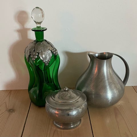 Potpourri krukke, Tin, Smuk gammel art deco potpourri krukke i tin. Vil tro den er fra starten af 19 tallet. Har været brugt til at brænde røgelse i.