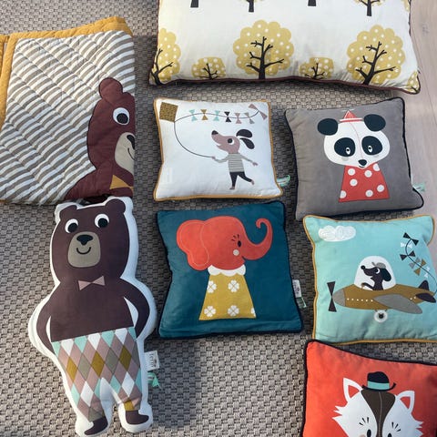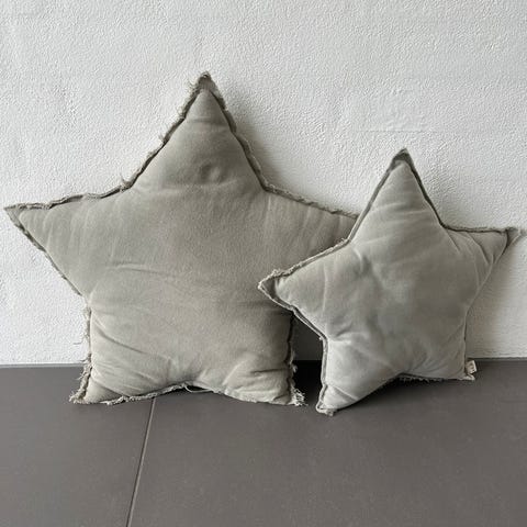 Nummero 74 stjerneformede puder i grå velour materiale. Puderne har en dekorativ stjerneform og kan anvendes som pyntepuder i hjemmet.