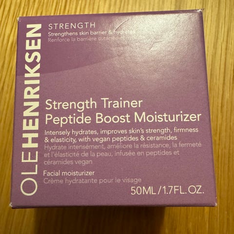 Ole Henriksen Strength Trainer Peptide Boost Moisturizer 15 ml. Fugtgivende ansigtscreme med peptider, ceramider og kollagen. Produktet styrker og hydrater huden. Vegansk formel.