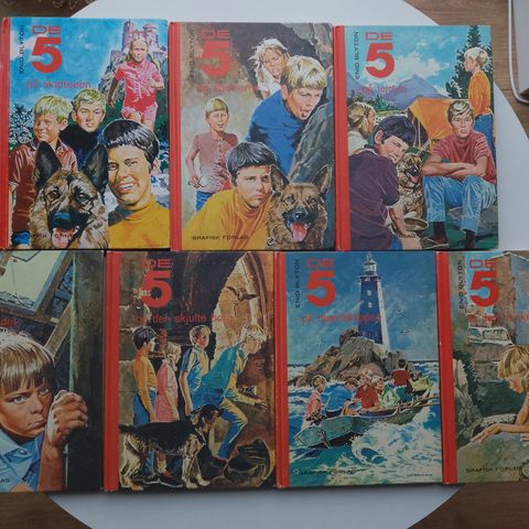 De 5 - nr. 1-3 - samlet, Enid Blyton, De fem 1-3 (Indeholder: De 5 på skatteøen, De 5 på nye eventyr, De 5 stikker af) .