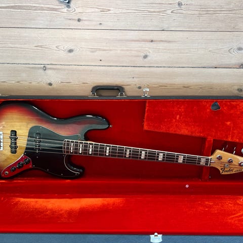 Denne personligt udvalgte Jazz Bass i fejlfri sunburst har en super fed action med lavtliggende strenge og så er den både brumdæmpet med kobber og konduktiv maling - OG trimmet og justeret til perfektion.