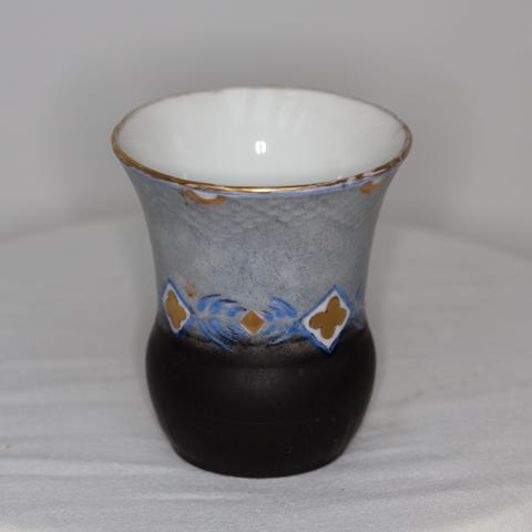 - Vase med dekoreret blomstermotiv, formentlig RC/Aluminia, mrk “J. Felsbo. 1968”, 26 cm