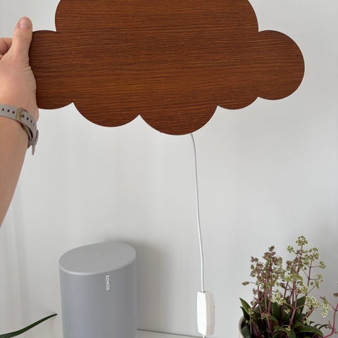 Flot skylampe fra Ferm Living sælges med en dekorativ hvid sky lavet i træ. Passer perfekt til børneværelset.