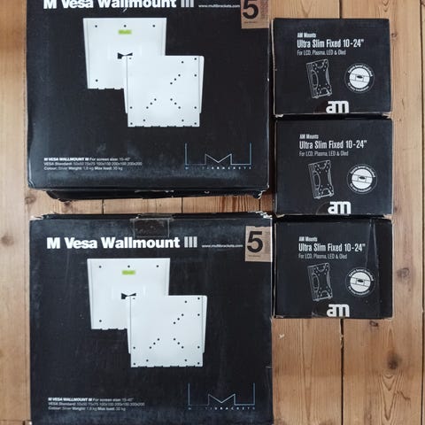 Omni Mount tv ophæng. Selve ophæng hvor tv monteres er 11,5 x 11,5, fuld udtræk er 34 cm. Farve: grå. Har tre stk. Ny pris 92 kr. pr stk. Pris pr. stk. 29 kr.