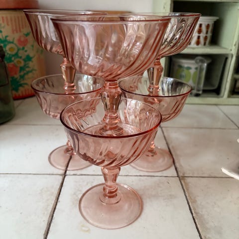 Rosa lille glas/champagneskål: 6 stk 450kr SOLGT