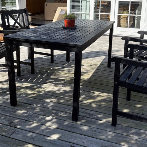 Én lamel på den ene stol er skruet ekstra fast. Men har ingen betydning :-)