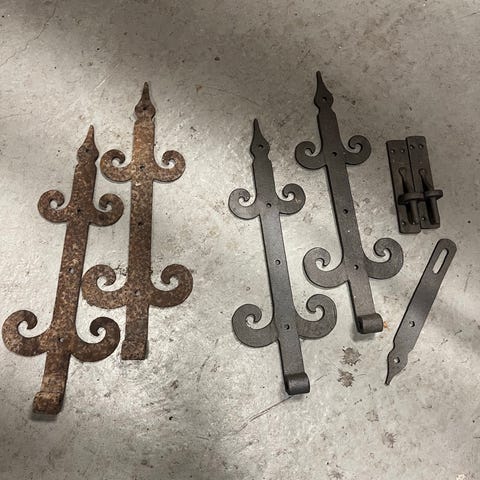 Antikke Hængsler, Jern beslag, 12 stk antikke hængsler lavet af jern.