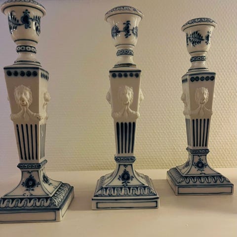 Helblonde musselmalet lysestager med 2 arme- 2 stk ikke Royal Copenhagen- TYSK