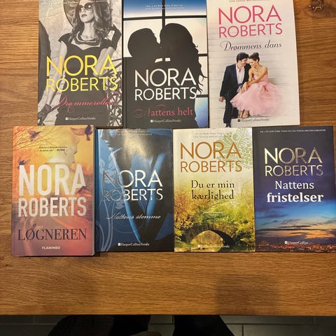 ³Nora Roberts samling af bøger med forskellige titler og omslag.