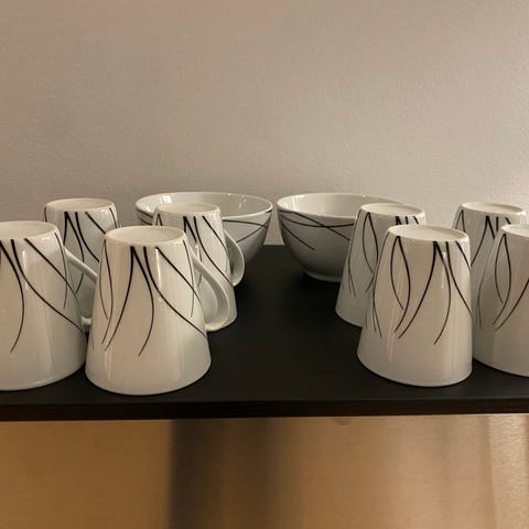 Kaffekrus med dyremotiv, 7 stk, hvid porcelæn alt for 100 kr