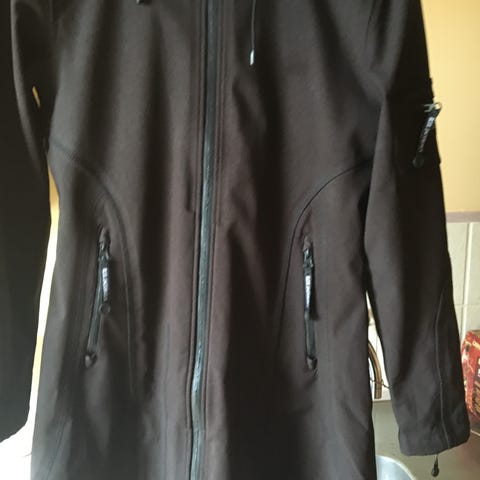 Ilse Jacobsen Raincoat i sort farve, designet til kvinder i størrelse 44. Jakken er fremstillet til at beskytte mod regn og vind med en praktisk hætte og lommer.