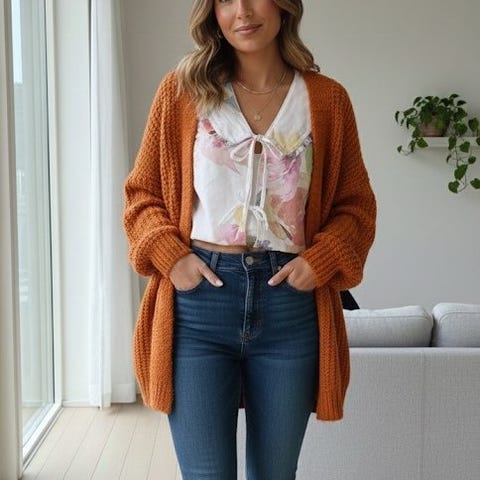 Blusen har mørkeblå bundfarve og er meget blød og behagelig at have på. Har brugt den 2 gange. Så meget fin stand.