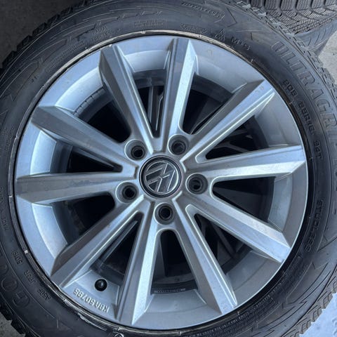 Stålfælge med VW hjulkapsler med Dunlop vinterdæk.