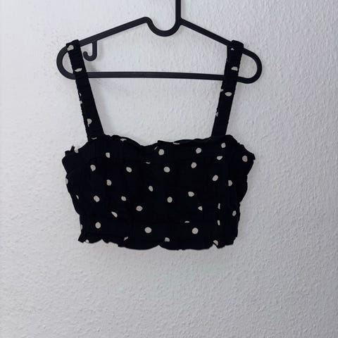 H&M Top i sort farve til damer i størrelse 38. Fremstillet i let materiale med knaplukning foran og detaljer ved brystet. Velegnet til daglig brug.