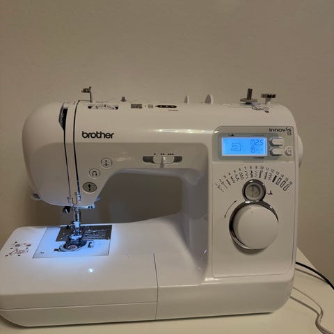 Brother XQ3700symaskine i hvid farve. Maskinen er designet til almindelig syning med flere stingmuligheder. Inkluderer fodpedal og brugervejledning. Velegnet til hobbybrug og mindre syprojekter. Nypris: 2500kr. Brugsanvisning medfølger.
