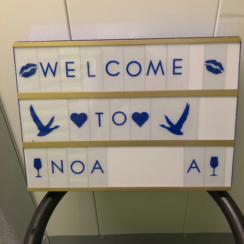 Et skilt med usb stik til opladning.