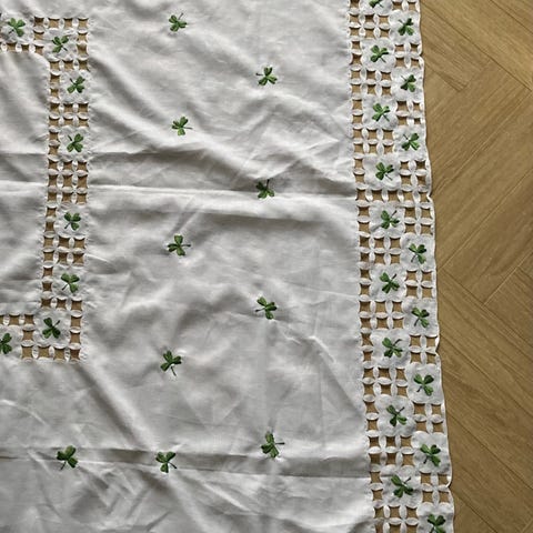 Smuk dug med drinksglas, whiskyflasker og -glas. Også skottehunde, heste og skibe.