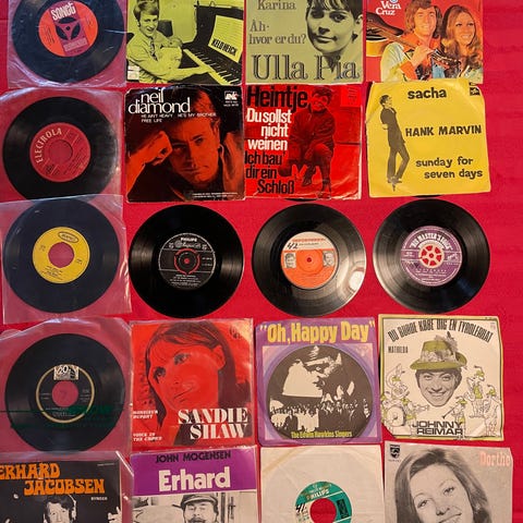 Samling af diverse 140 stk. tyske LP-plader med forskellige musikgenrer - herunder schlager - og kunstnere. Af de 140 plader er 1 stk. 3-dobbelt album og 10 dobbelt-album.