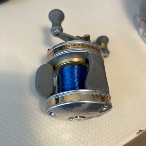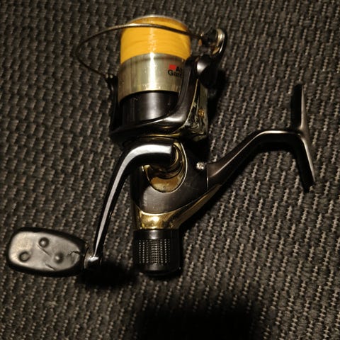 Denne Record 1800a fiskerulle befinder sig på adresse i Jystrup, Midtsjælland.
