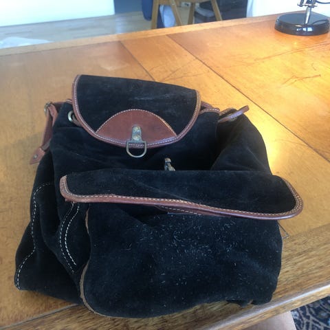 Taske / rygsæk i skind - sort. - med mange rum med lynlåse - kan sendes for 57 kr