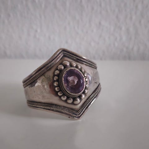 Håndlavet og smukt dekoreret med drager og ornamenter, samt en poleret sort oval onyx sten.