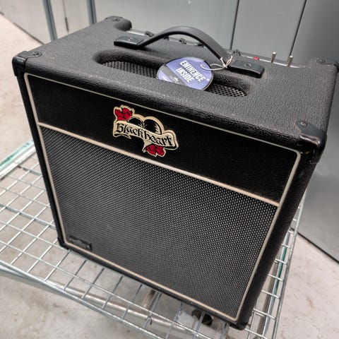 Blackstar Guitarforstærker kompakt model i sort farve. Udstyret med kontrolknapper til justering af lydniveau og tone. Designet til brug med elektrisk guitar og egnet til både øvelse og mindre optrædener. Har bærehåndtag for nem transport.