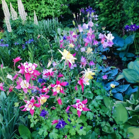 Akelejerne er lyserøde eller blå. Den store potte 40 kr. Den lille potte 25 kr.