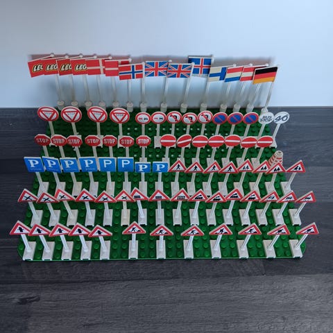 10 forskellige gamle lego vejskilte.