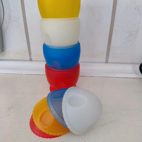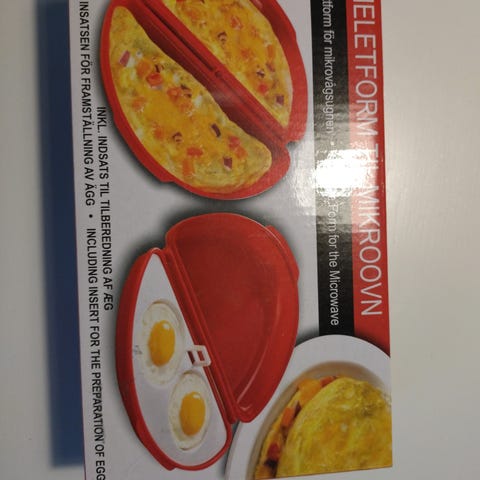 Omelet/røræg-plastskål til mikroovnsbrug. Meget nemt.