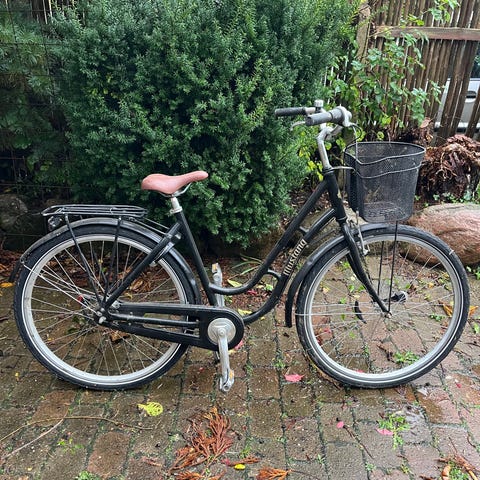 Stelnr. WDB73217, 28" Hjul med. For og bag lygter, reflekser sæt, næsten nye dæk, cykel pumpe, bagagebær, bagkurv cykel lås.