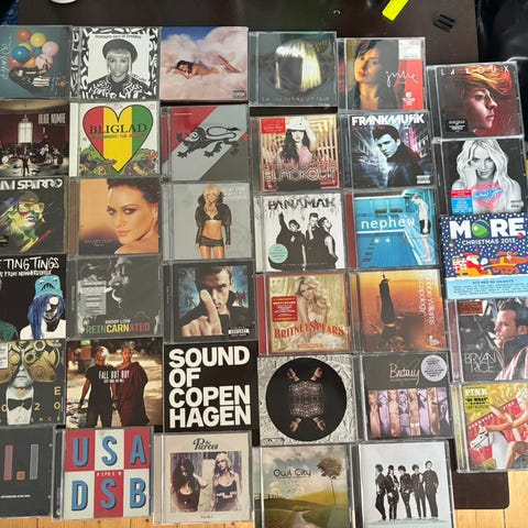 En større samling af assorterede CD'er og DVD'er sælges samlet. Ligger i flyttekasser.