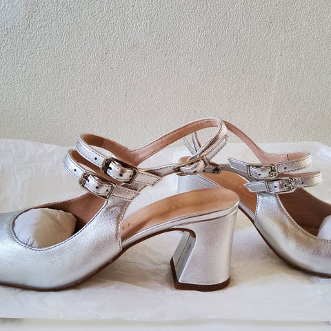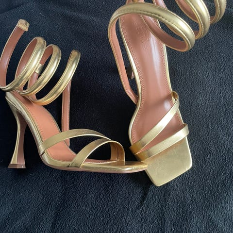 Super flotte guld sko i det blødeste skind, str. 35, hælhøjde 8 cm., Nypris kr. 999, originalæske medfølger