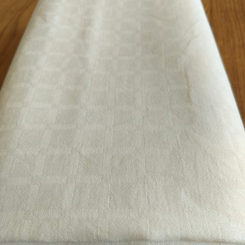 Hvid damaskdug med egeblade og agern.