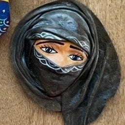 Maske formet i læder, fra Tunesien. Har hængt til pynt.