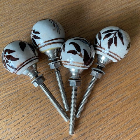 2 x Knop / greb i sort marmor. Almindelig brugsspor med minimal afslag i marmoren i kanten. Måler : diameter 3,5 cm