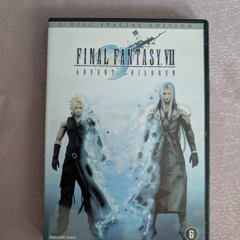 Final Fantasy VII Advent Children DVD featuring the movie based on the Final Fantasy VII video game. The DVD includes the full-length animated film with a runtime suitable for fans of the franchise and animation enthusiasts.