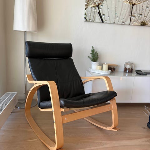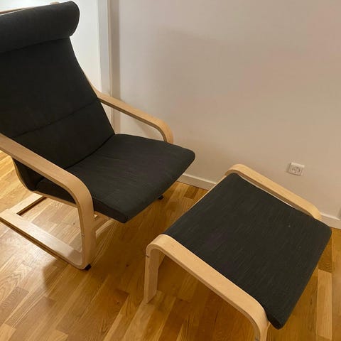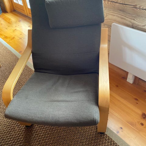 2 fine orange stof lænestole, formspændt bøgetræ, som man sidder utrolig godt i, de kan nu blive dine.