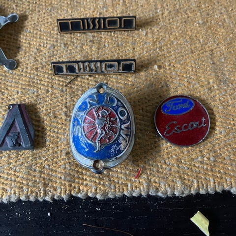 Seks styk metalmærker sælges samlet