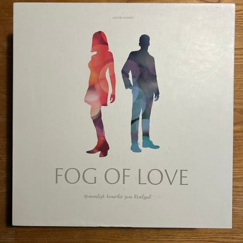 Fog of Love brætspil med romantisk tema, der simulerer et parforhold mellem to spillere. Spillet indeholder karakterkort og forskellige scenarier til at udforske relationer og beslutninger i et forhold. Komplet. Sender ikke for køb under 200 kr.