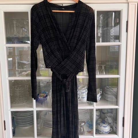 Festkjole, NÜ , str. XL, Sort-grå, Viskose, Ubrugt, NÜ kjole sort/grå i dobbelt lag stof, inderst en kjole i blød viskose jersey og yderst en gennemsigtig creep-viskose der udgør et lille ærme