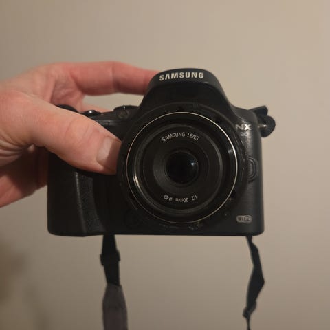 Samsung, NX210, spejlrefleks, 20.3 megapixels, Perfekt, Samsung NX 210. Samsung 50-200mm F4-5.6 ED OIS NX. Generelt brugt meget lidt og uden brugsspor. Spejlløst kamera med rigtig gode anmeldelser. Superhurtig lukker(1/8000), autofokus og ISO 12800. Upload direkte fra kameraet. i-Function 2.0. AMOLED-display. Original nakkestrop(Ubrugt) . Nogle billeder viser dog med lille linse som ikke er med