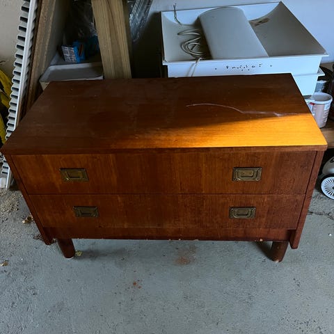 Kommode, Fin lille hyggelig gammel teaktræ kommode / skænk / bord.