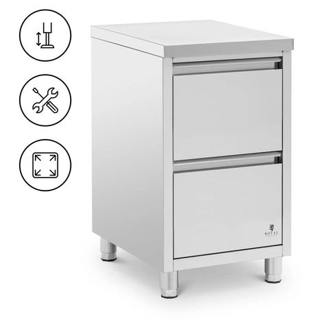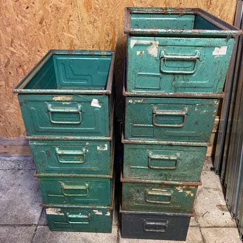 16 stk udtræksskuffer i rustfrit 316L stål. Samlet i 4 moduler a 4 skuffer. Custom fremstillet til frysere i Pharma industrien, deraf den høje stålkvalitet.