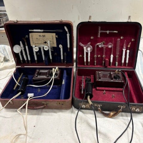 Used but in very good condition. Copper finish, wood base, and all parts intact. Includes E-Smog attachment and power cables.