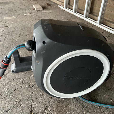 Gør havevanding hurtig og nem med denne automatiske 20-meter slangeopruller. Træk nemt slangen ud til rosenbedet eller terrassen – slangen låser, når du stopper. Et kort træk, og slangen ruller sig selv op jævnt og pænt.